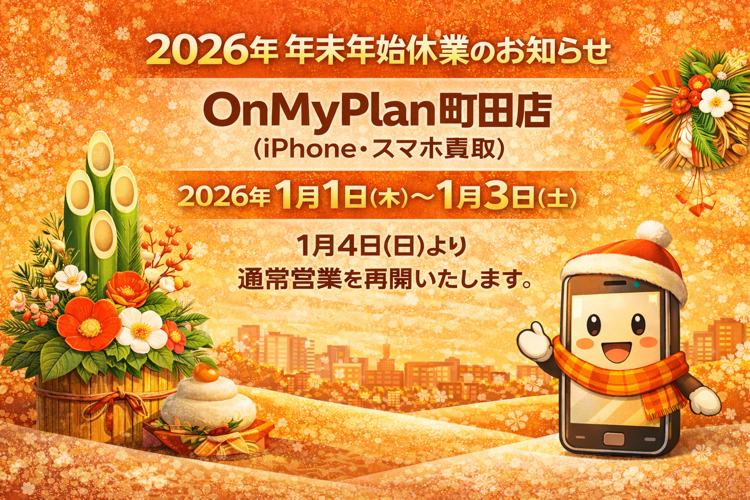 2026年 年末年始休業のお知らせ【OnMyPlan町田店(iPhone・スマホ買取)】